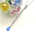 | ブルーラインペンダント シックな印象のジュエリー! ライトブルーサファイアとダイヤモンドシミュラントが 交互にセットされ、 トップにライトブルーのブリオレットが 爽やかなペンダントです。 Vゾーンの深いインナーやドレスを着たときには、 長く下がるタイプのラインペンダントが、美しく映えます。 |
