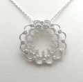 | ダブルリースペンダント 【一点ものの限定ジュエリー】 エレガントで印象的なジュエリー! 繊細な細工の美しい 華やぎのある雰囲気のペンダントです。 お花の輪(リース)が2つ重なったデザインなので 「ダブルリースペンダント」と名づけました! ペンダントは2つあわせても、ひとつずつ別々でも、 3通りの楽しみ方ができます。 素敵なプレゼントとしても最適なジュエリーです。 |