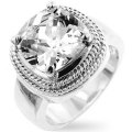 大きなクッションカットのダイヤモンドをロープ模様の細工が二重に取り囲んだクラシックな雰囲気のデザイン