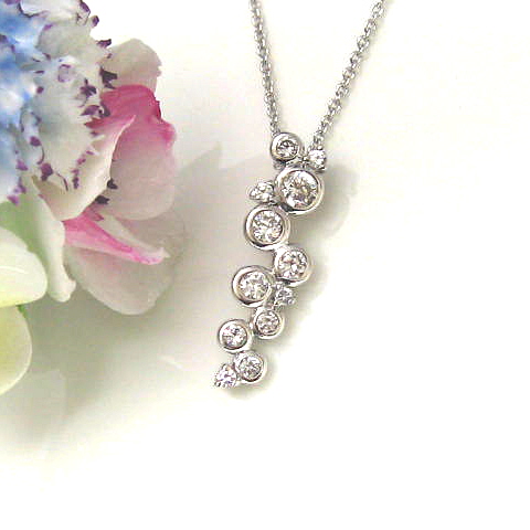 ベゼルセットと3つの爪で留められたストーンが バランスよく連なった、 「小さな泡」をデザインしたペンダントです。
